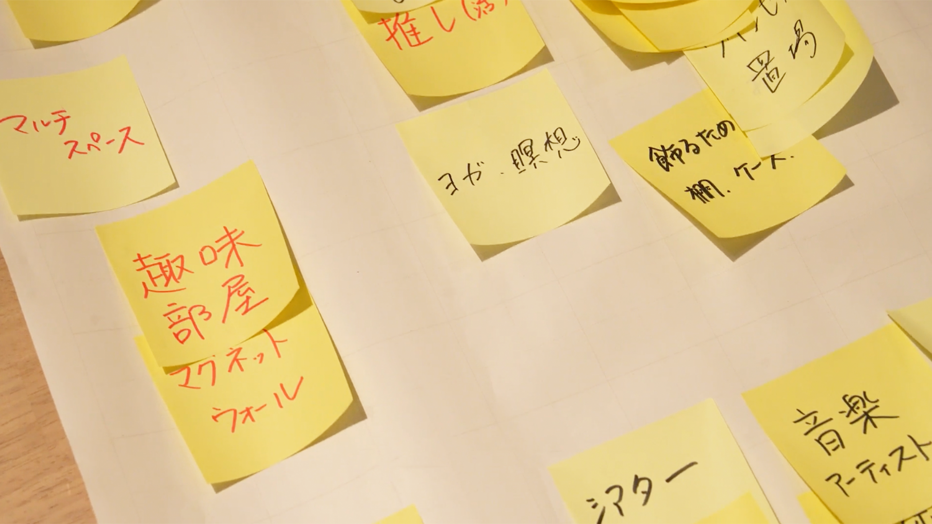 篠:「最初に、RoomClipの水上さんを中心にワークショップを行いました。参加者全員に、それぞれどんな生活がしたいか、休日はどう過ごしたいかなどを聞き、付箋に書いてボードに貼っていって、じゃあこれを実現するためにはどうしたらいいのか、ということを順序立てて考えていきました。図面を引くとかではなく、率直に思っていることをぶつけあうような形でしたね。」