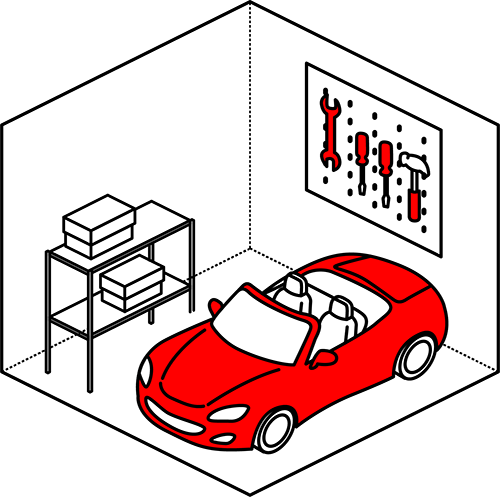外部環境の影響を受けにくい快適な保管環境に加え、居住空間から眺めたり、DIYやメンテナンスを楽しんだりと、趣味の時間を豊かにする暮らしのスタイルです。